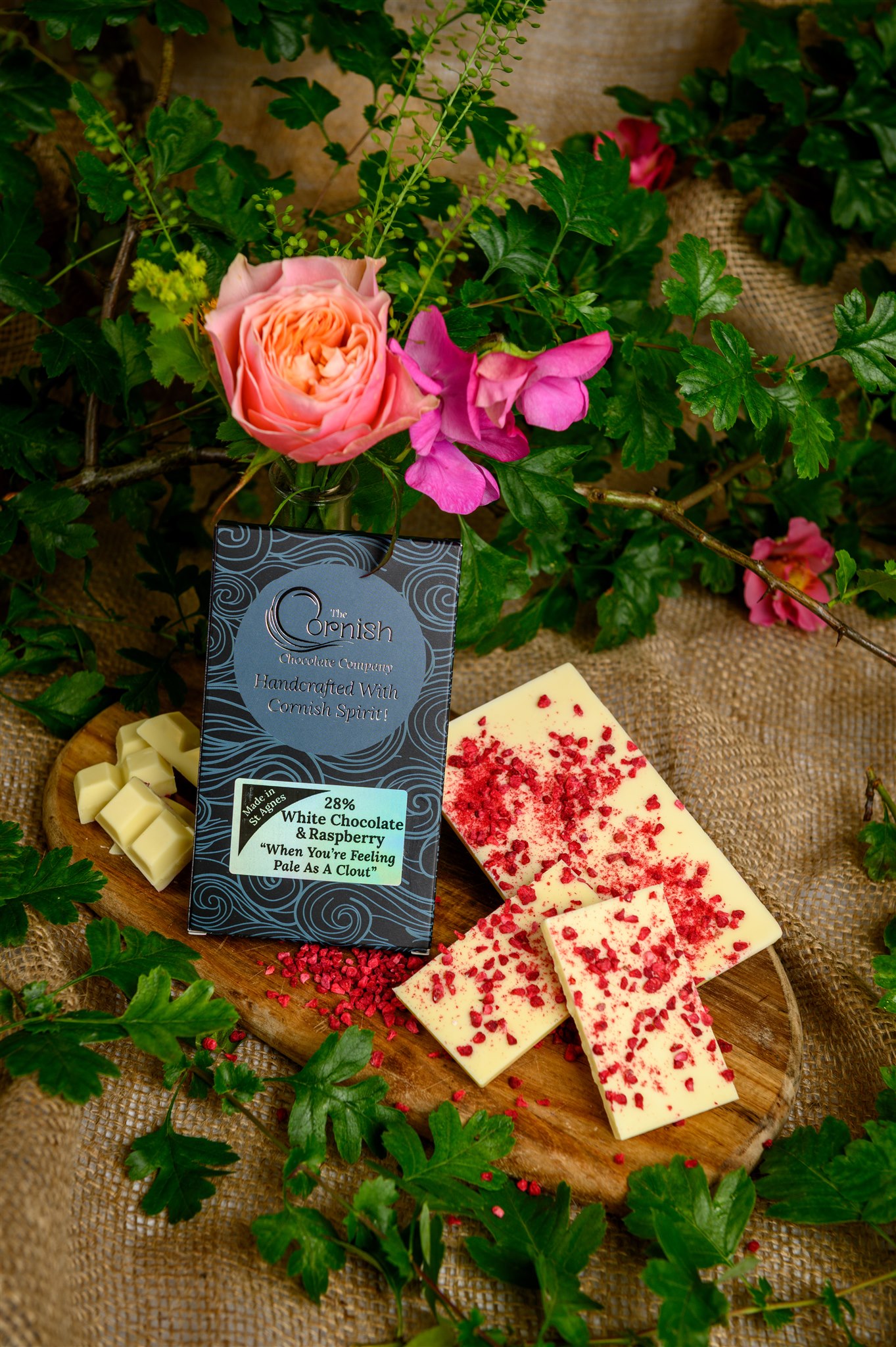 Delight in the smooth creaminess of white chocolate, perfectly complemented by the tart sweetness of raspberries. Handmade in Cornwall by The Cornish Chocolate Company, this bar is a luxurious treat that balances indulgence with fruity freshness.
